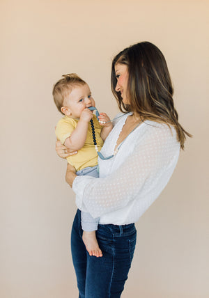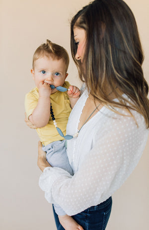 - All items are wiped down before shipping, however a quick wipe down with your preferred cleaning method before allowing baby to chew is recommended.
