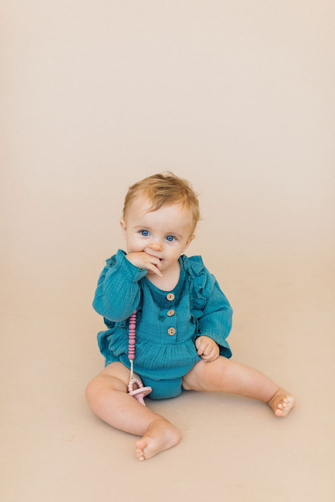 Chewable Charm pacifier clips are simple and the perfect accessory. Tie any type of pacifier or teether/ toy through the loop and stop playing the pick up off the floor game every 2 minutes! They are lovely + practical and can double as teethers, but always require adult supervision.