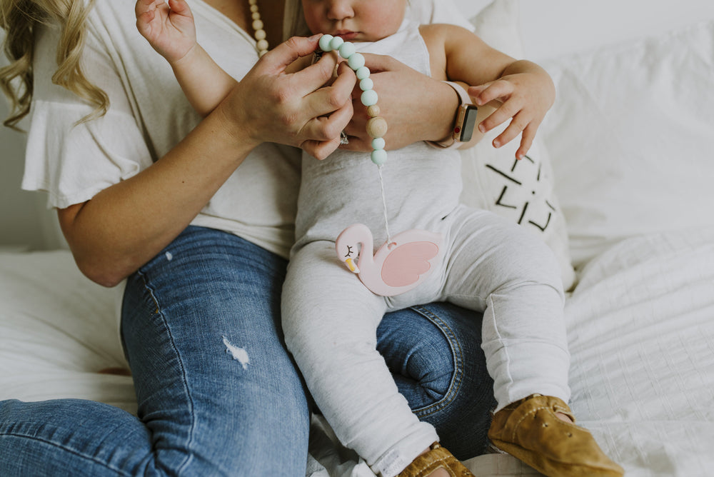 Chewable Charm pacifier clips are simple and the perfect accessory. Tie any type of pacifier or teether/ toy through the loop and stop playing the pick up off the floor game every 2 minutes! They are lovely + practical and can double as teethers, but always require adult supervision.
