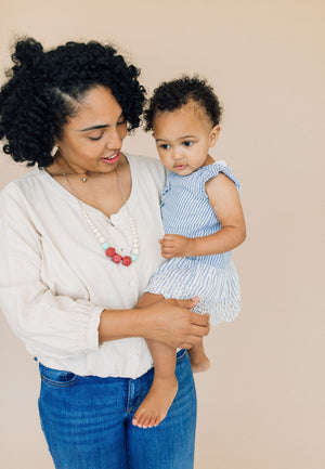 The just-right length plus the just-right mix of the must have color of the year Marsala with Mint & Cream make this piece the ultimate statement necklace.