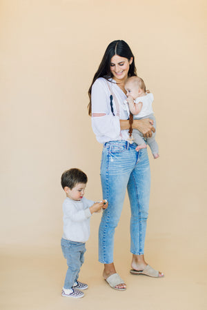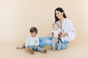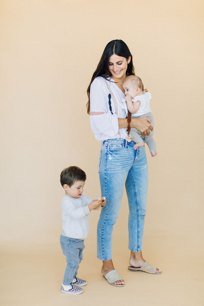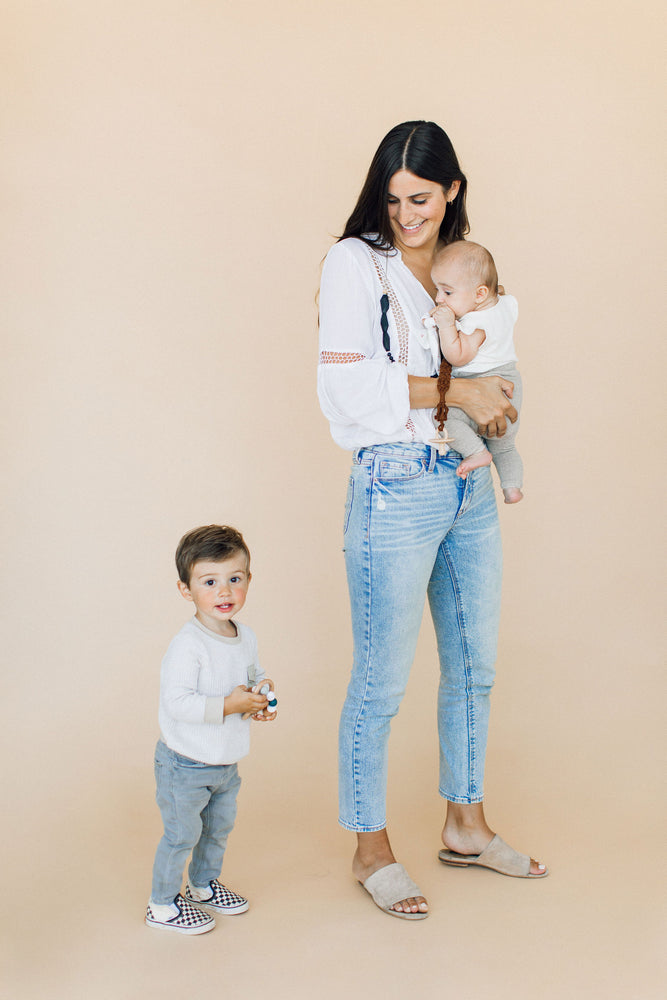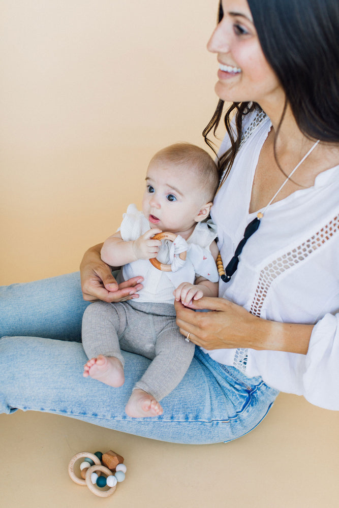 Inspired by our son’s favorite book, Guess How Much I Love You and Little Nutbrown Hare’s adventures, our Bunny Ears teether ring is perfect for the simple + practical babe. Toss it in the freezer to help soothe those sore gums or in the diaper bag for a lightweight (and cute) toy while out and about.