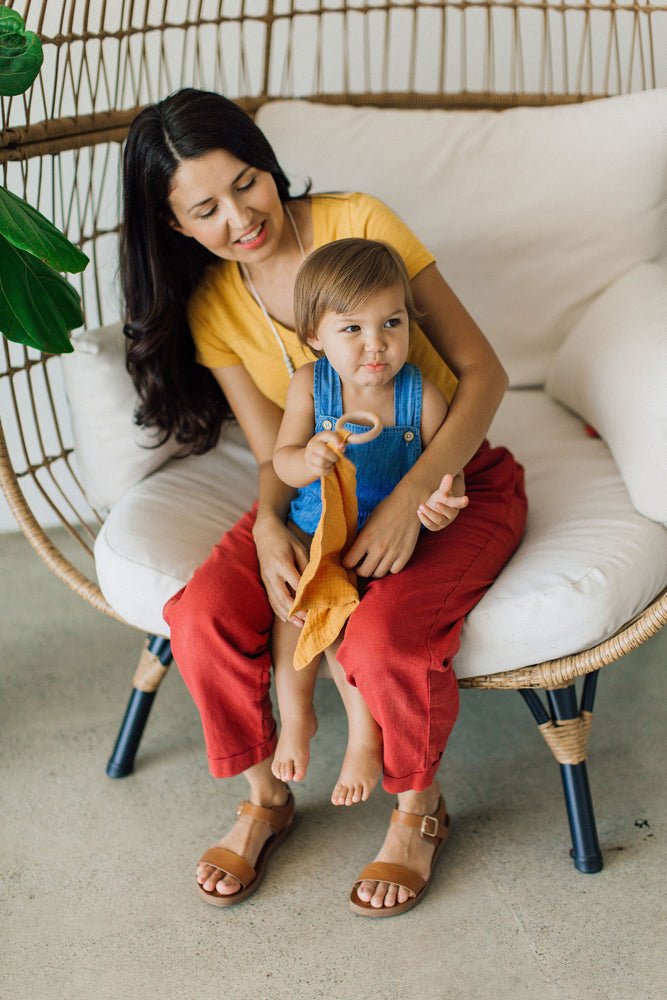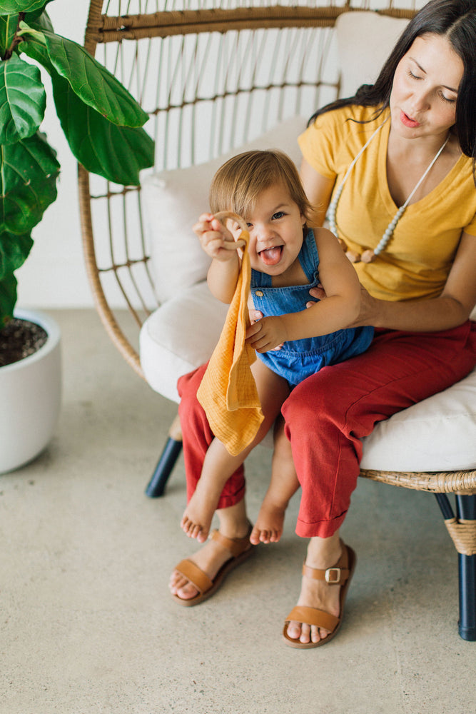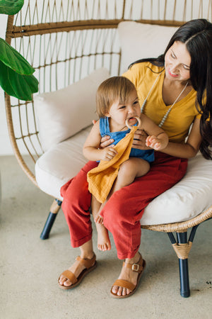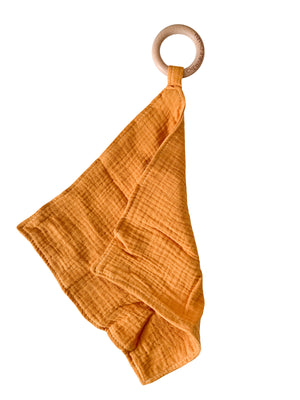 The sweetest comforting muslin cloth teether to bring along on all your adventures. Muslin cloth is 10in x 10in square.