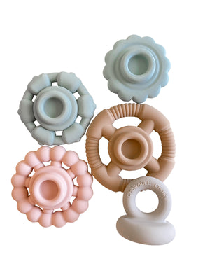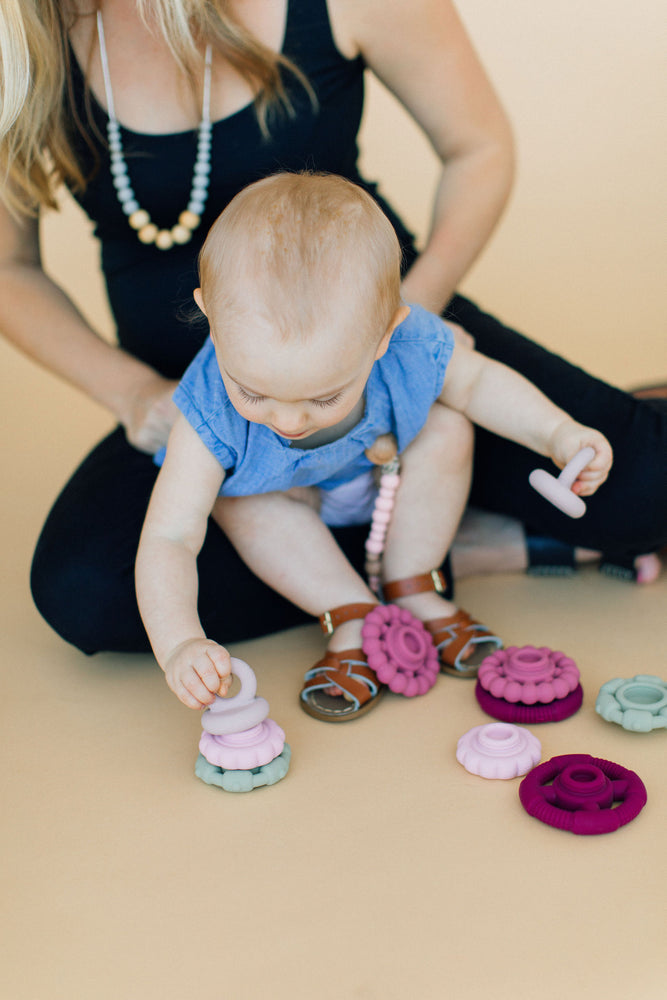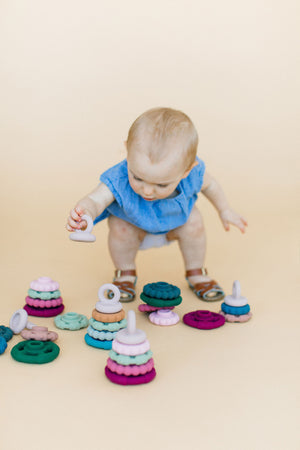 The Sydney Teething Stacker is the ultimate multi-purpose toy. Teething + Play! Your baby will quickly discover how the stacking rings make the best soothing teethers!
