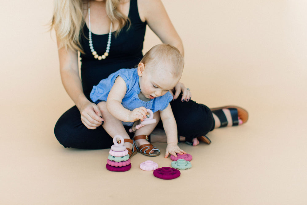 Babies will love chewing on the silicone rings and grow into using their hand-eye coordination by stacking the rings. Don't forget to try different stacking designs!