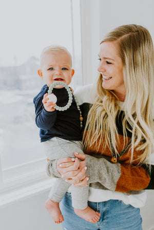 - 100% food grade silicone teething ring